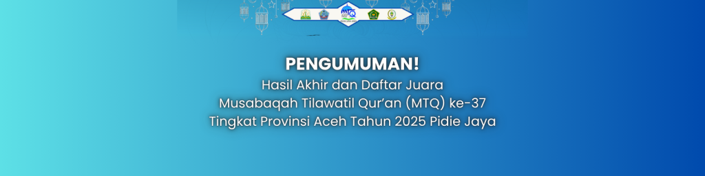 Lentera24.com | MEUREUDU - Dengan penuh rasa syukur, Panitia Pelaksana Musabaqah Tilawatil Qur’an (MTQ) XXXVII Tingkat Provinsi Aceh Tahun 2025 di Kabupaten Pidie Jaya mengucapkan selamat dan tahniah kepada kafilah-kafilah terbaik yang telah meraih prestasi gemilang pada ajang ini.